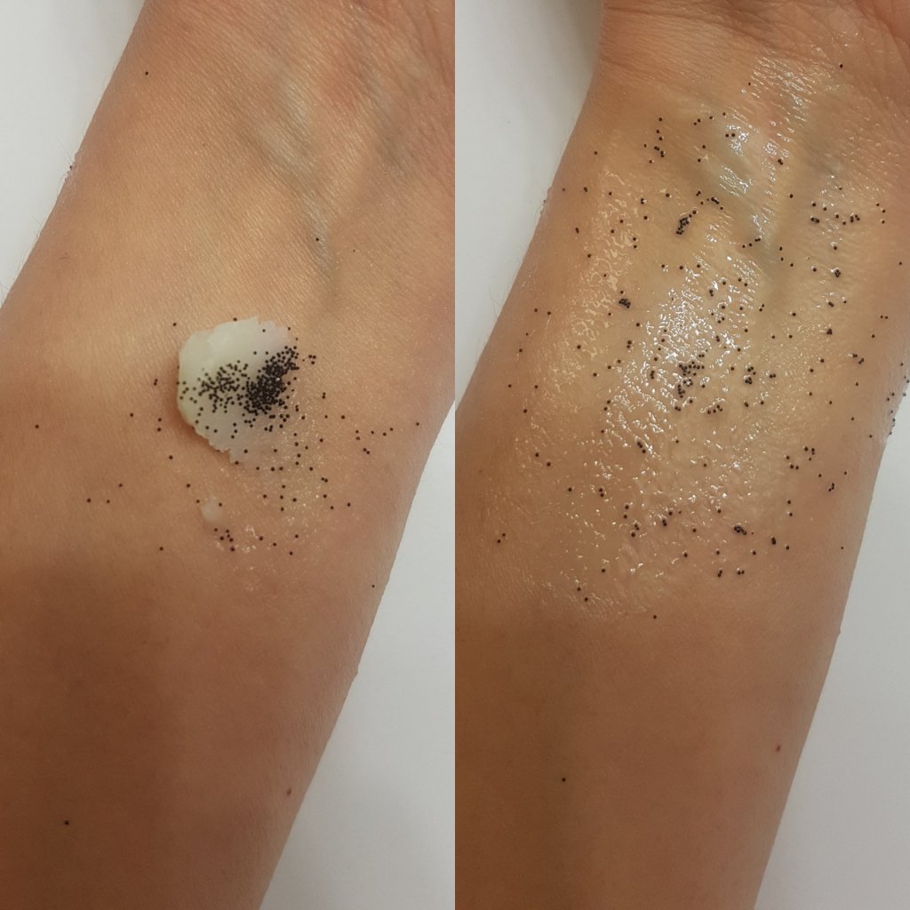 This is to be used once or twice a week in the morning mixed with Slaai – morning, I’m guessing, as the face is free from makeup and dirt – I wouldn’t use this at the same time I’m cleansing a face full of makeup and sunscreen. This has tiny black spheres of charcoal powder and fine white bamboo and cornstarch powder.