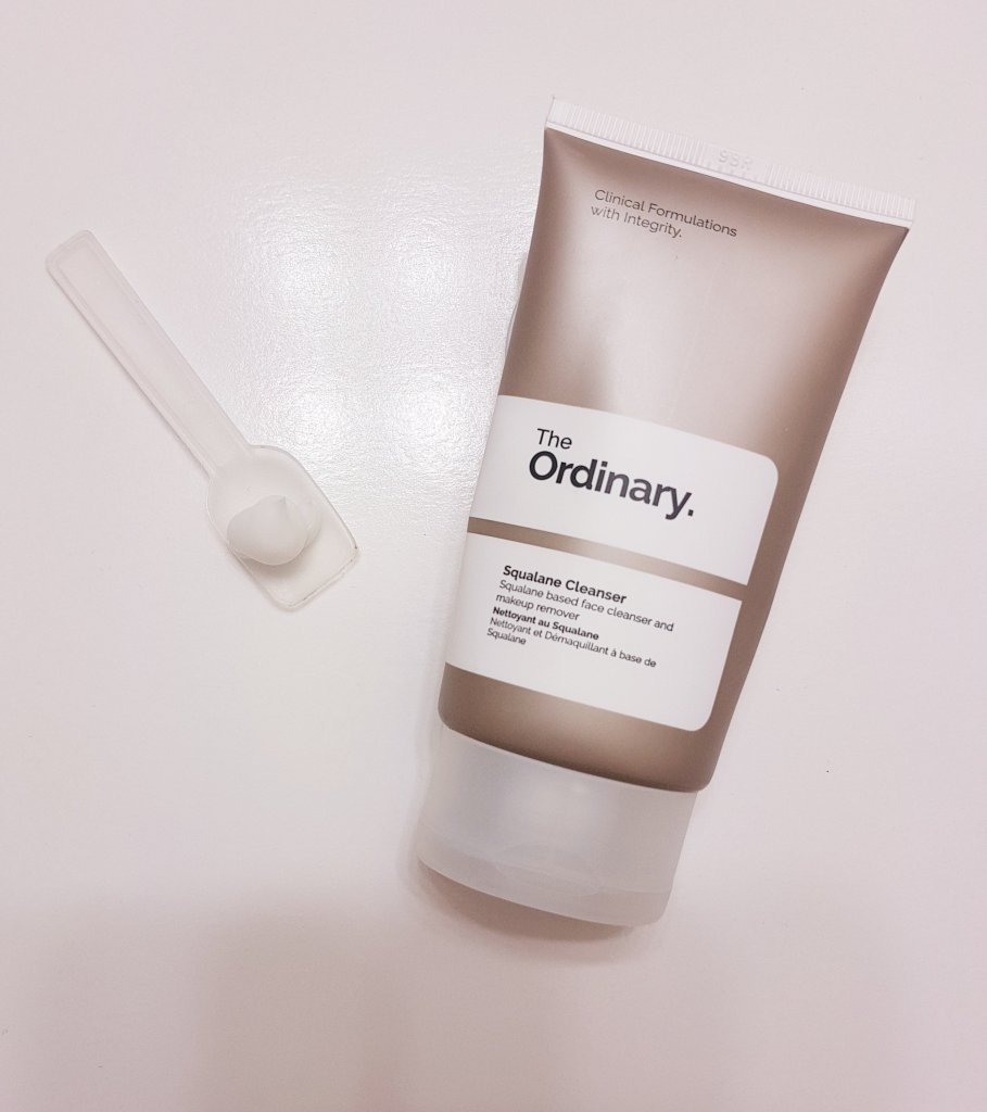 Squalane Cleanser from The Ordinary is an noncomedogenic, balm-type cleanser suited to all skin types that can be used as a daily, standalone cleanser or the first step in a double cleanse. This claims to dissolve and trap makeup, sunscreen, dirt and debris from the skin while being gentle and moisturizing. It starts off as a balm-like texture, which turns to an oil when warmed on the skin and then turns to a milky texture when wet.