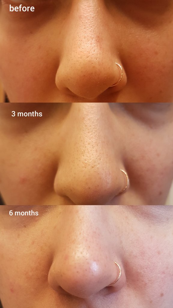Looking at these photos, the number and size of the blackheads has improved a bit (I think I’d expect more improvement after 6 months’ use, however). The pores on and around my nose look smaller and I have improvement in texture and clarity of the skin.