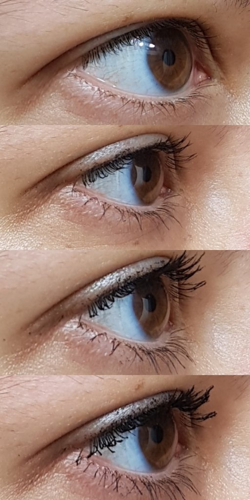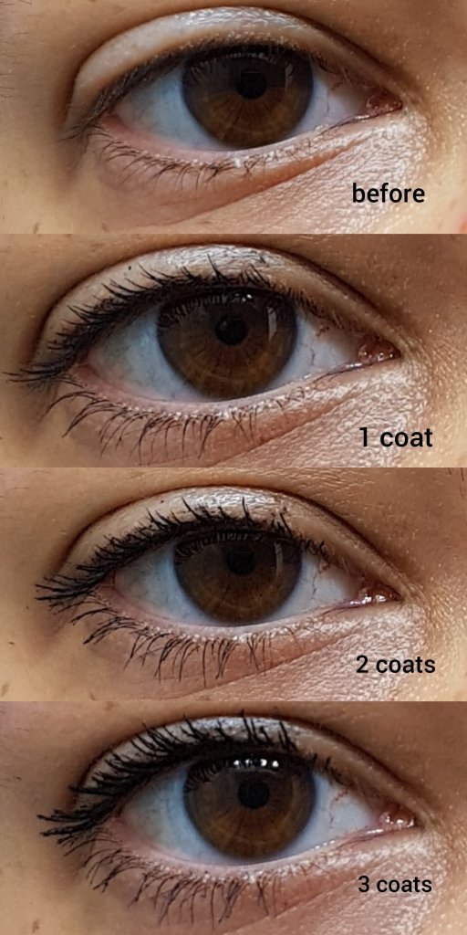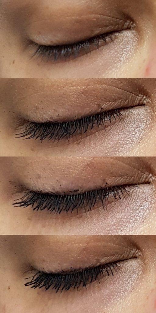 I have small eyes and wear contact lenses. My lashes are short, thin and grow out straight. For this review, I didn’t use an eyelash curler, lash comb or lash primer, as I wanted to see how the mascara performs on its own.