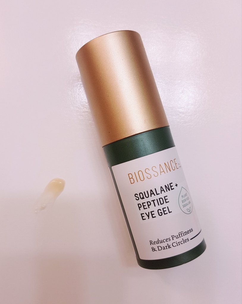 Biossance has added a recently new eye product called Squalane + Marine Algae Eye Cream and on Instagram has commented that the Marine Algae Eye Cream is richer and targets fine lines, wrinkles and loss of firmness while the Peptide Eye Gel is lightweight and targets puffiness and dark circles. If using both, the Peptide Eye Gel can be applied in the morning and the Marine Algae Eye Cream in the evening.