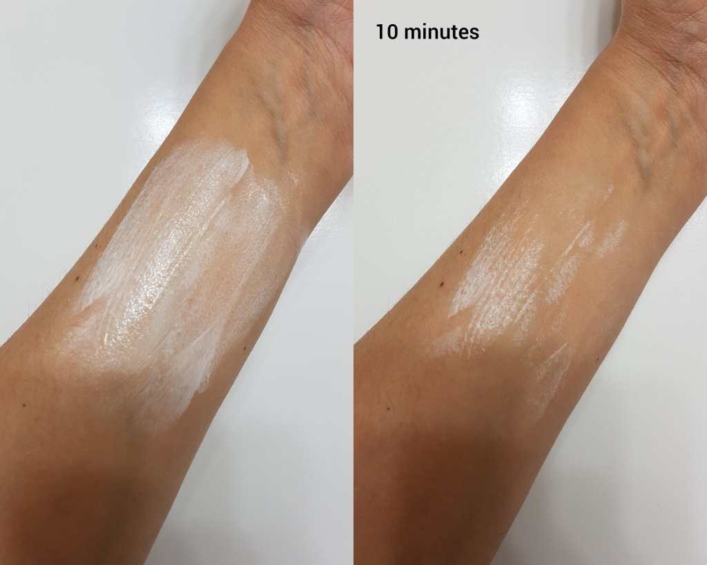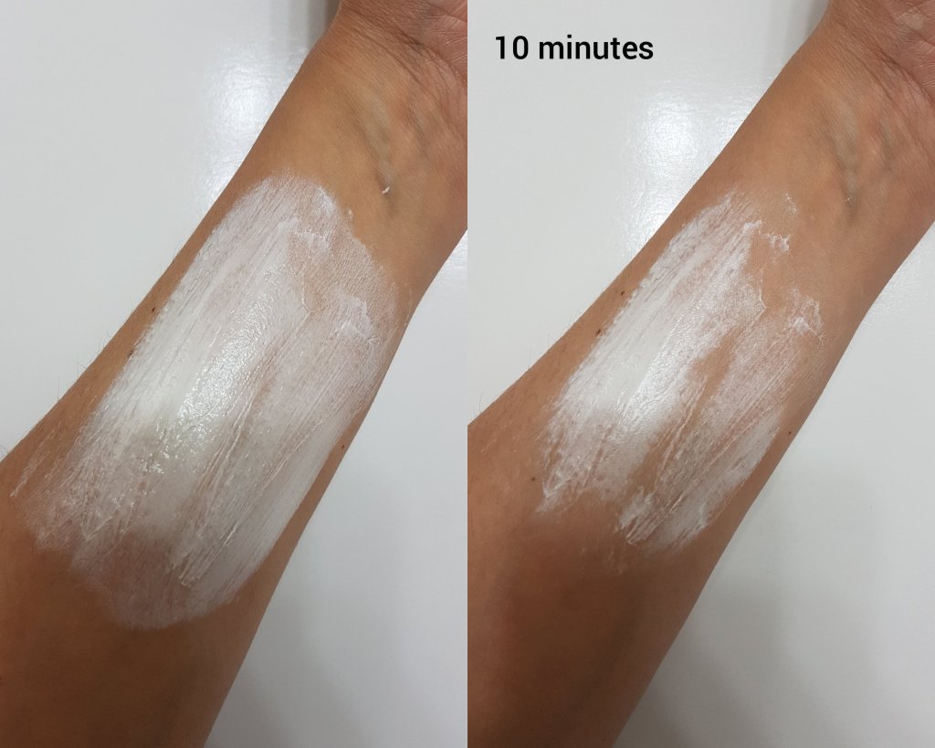 The photo above is a thin layer of the mask applied to damp skin as directed. Starting at about 5 minutes, the product seems to disappear on the skin as it dries. It doesn’t fully dry out and crack like other clay masks (clay masks really should not be left to dry and flake on the skin anyhow as it causes dryness and irritation).