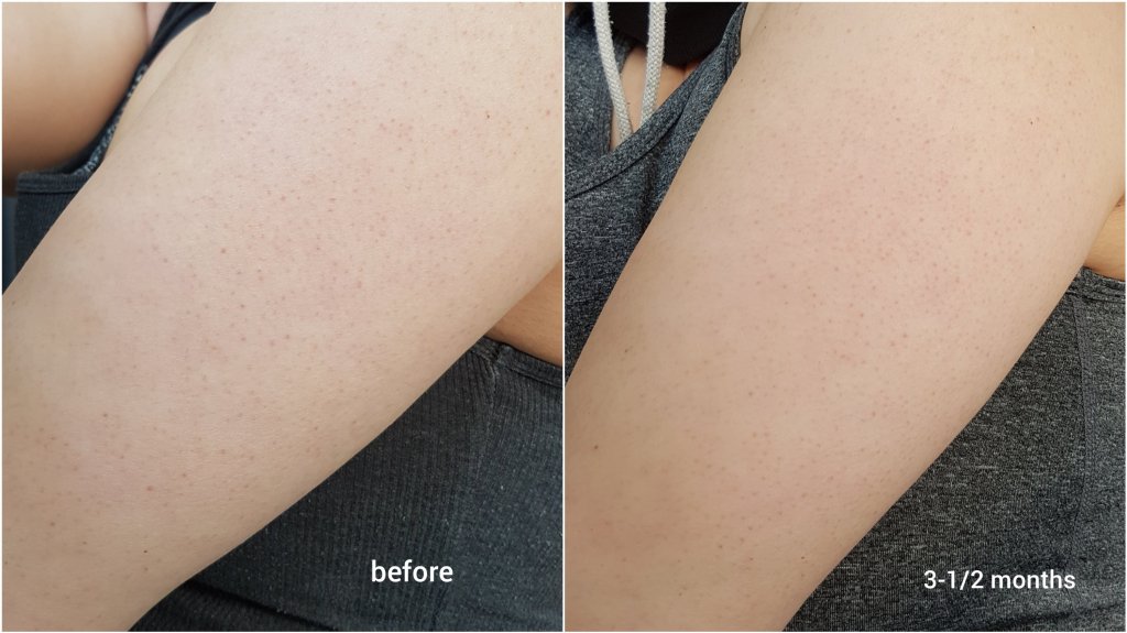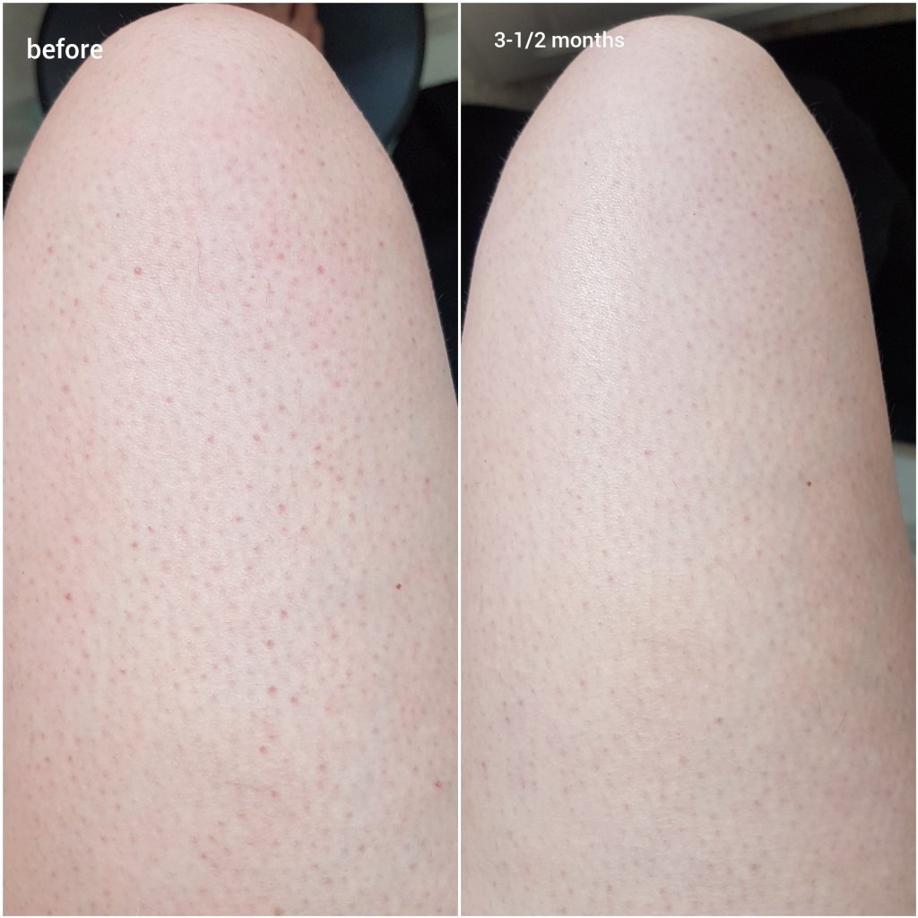 2. Hi Michele, did anything work to help improve beyond your “after” photo? My legs are currently at your “after” photo and this is just after 1.5 months of using Cerave Salicylic Acid lotion daily. However, I seem to have reached a plato =(