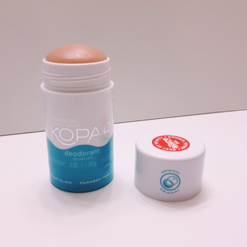 Kopari Coconut Deodorant. Fantastic odor protection. I wonder if I can layer with Drunk Elephant’s Sweet Pitti which is really good at absorbing sweat.