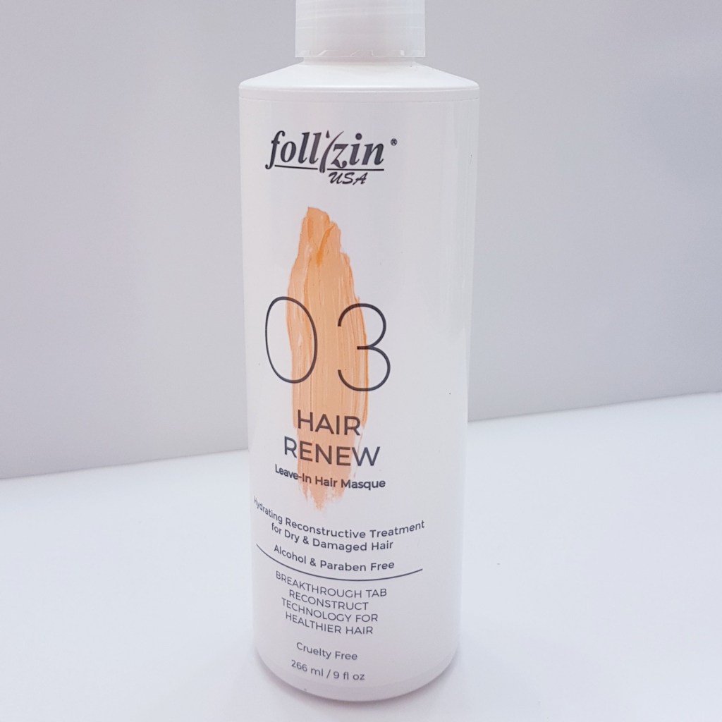 Follizin Hair Renew Leave-In Hair Masque. Improves frizz, silkiness, softness and moisture.