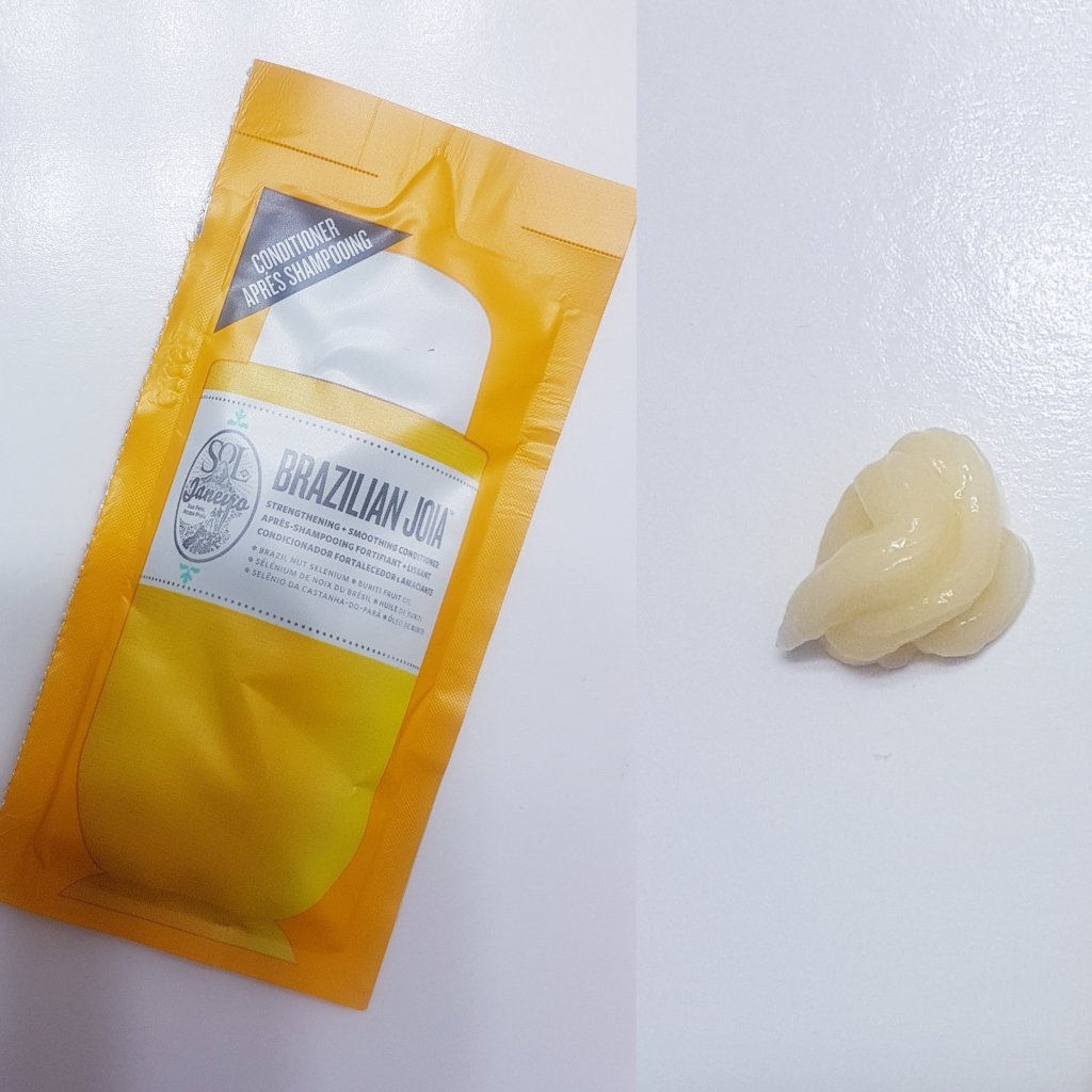I got two samples each of the Sol De Janeiro Brazilian Joia shampoo and conditioner and got three uses. I have an oily scalp and thin, dry, wavy hair that I have not colored in 6 months. I wash my hair about every 3 days.