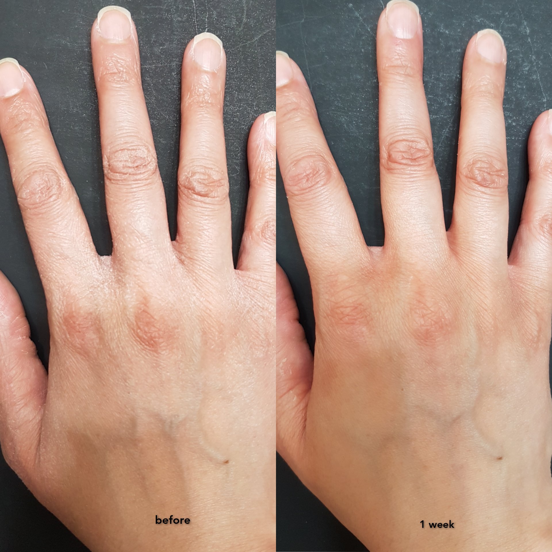 Above, my hands had been very dry with cracked knuckles and I used the Lano cream for a week in the evening. There are still a couple of dry areas and peeling skin on my thumb in the after photo, but they look much improved and are no longer painful and cracked. My skin felt softer and more nourished. Having said that, I got better results from Working Hands but if looking for a more “natural” lotion, the Lano cream is not bad.