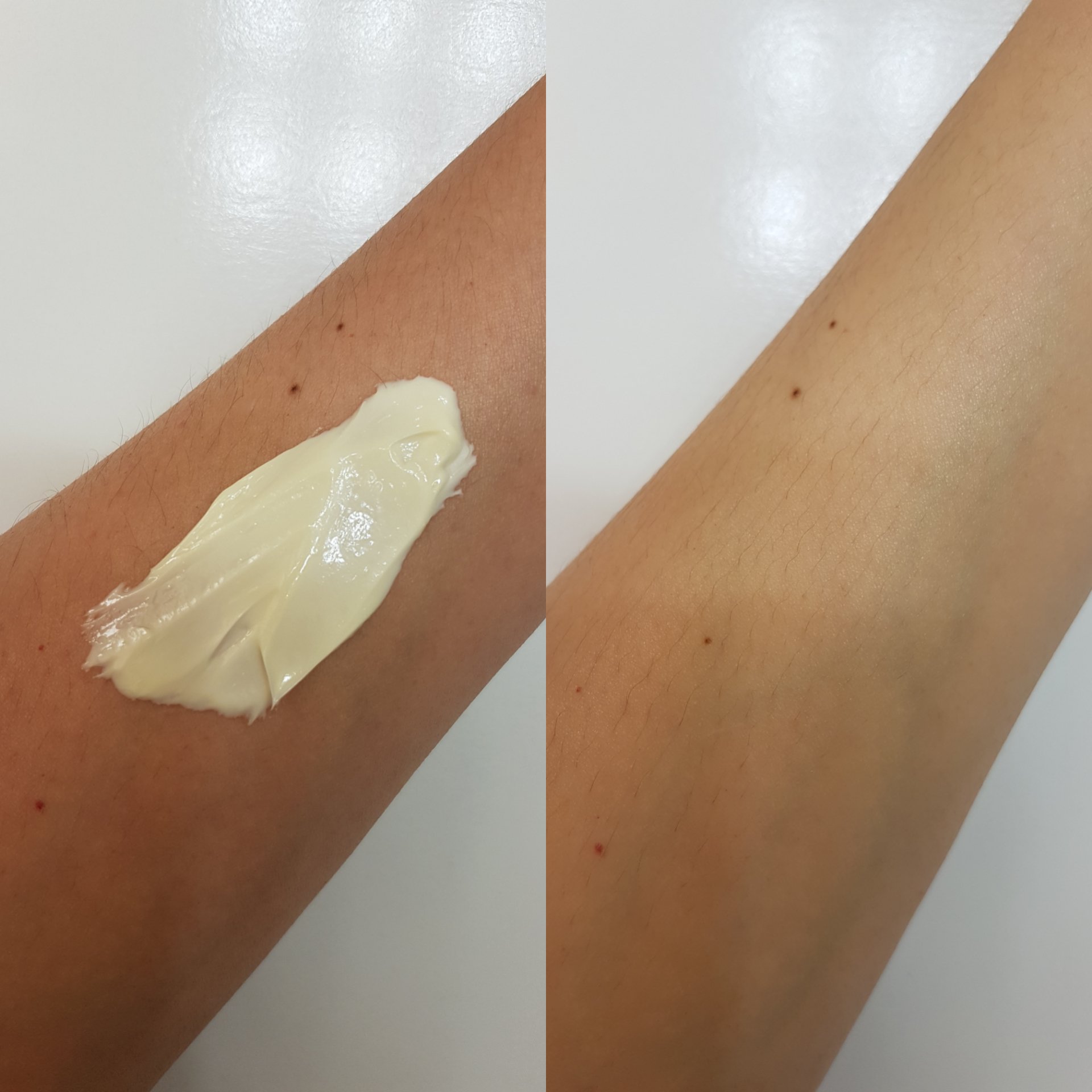 I got the multi-cream to use on my hands, but tried it on my under-eyes, lips, face and arm. This is a rich cream that has a light lotion scent. It applies smoothly at first, then sticky and tugs on the skin, then a tacky feeling is left for a few minutes and I preferred to use this on my hands at night for this reason. Once absorbed a bit, a silky layer is left on the skin. It is not greasy. The lotion felt nice on my lips; I do not think there was really any further improvement compared to my usual lip balm. However, I think this would be really nice as a base lip treatment in the winter. The multi-cream is quite heavy for use under the eyes, so just a tiny amount is needed. Applying the cream tugs on the skin, so patting in works better. This was not too bad on the face (I applied to my cheeks only as I have oily skin), but heavier than I would like and a bit tacky, though again, this would be good in cold weather on small dry patches. It applies to large areas much easier when the skin is damp, but still has the tacky, friction feeling.