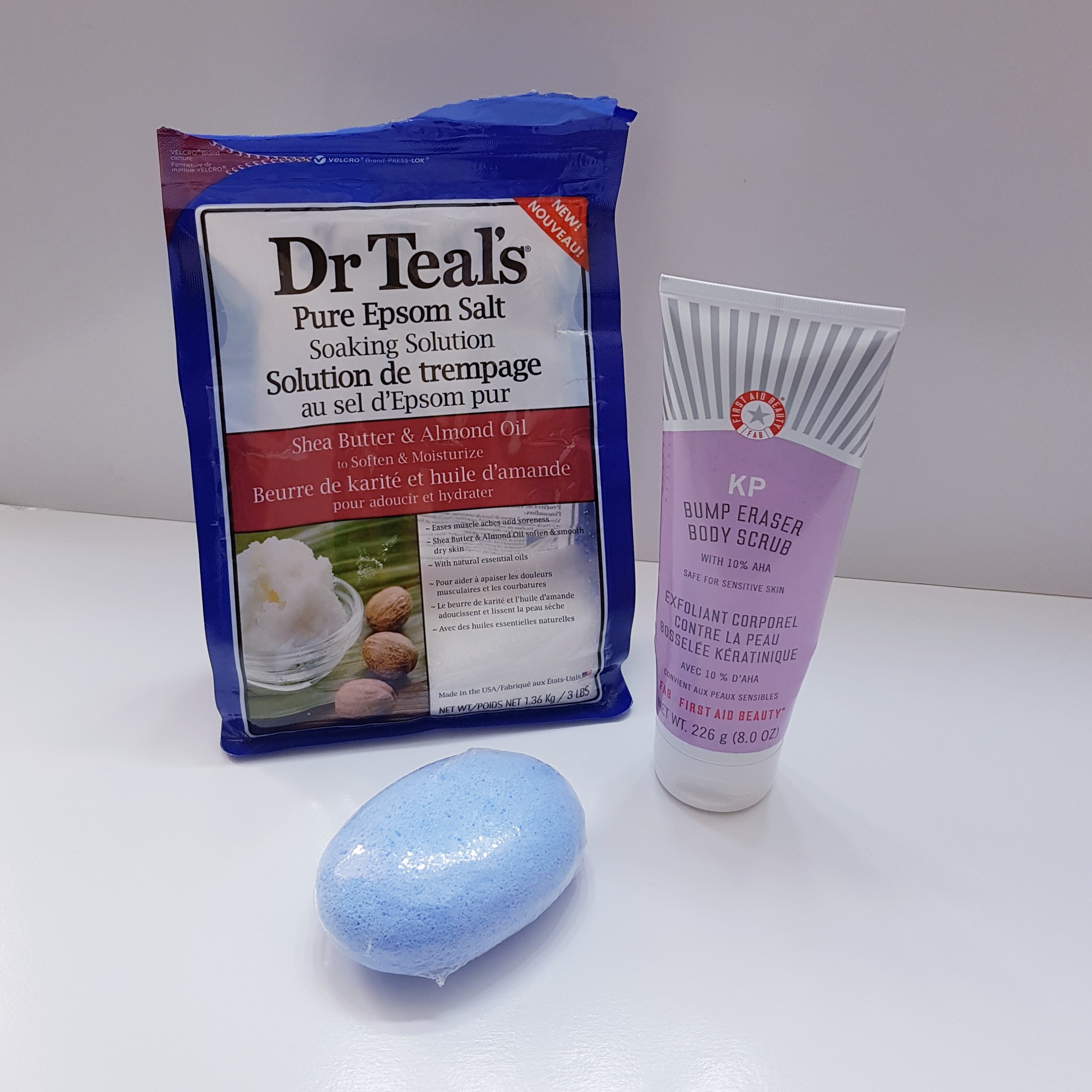 As part of my foot routine, once a week I soak my feet in Epsom salt for 10 to15 minutes, buff with a baked silica glass pumice stone, exfoliate with KP Bump Eraser and leave on for about 10 minutes, then apply O’Keeffe’s foot cream for very soft, smooth and moisturized feet.