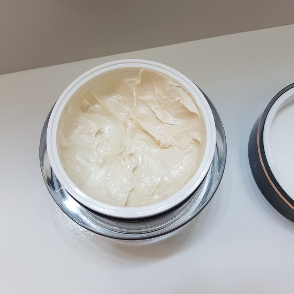 The Whipped Body Créme is a very thick lotion, not as thick as some body butters. It does not spread easily on dry skin, but after a shower on damp skin, it goes on very nicely. The lotion is a bit heavy at first and take a few minutes to absorb. A little goes a long way. The skin is then left with a velvety feeling, lasting about 8 hours; smooth, soft skin until the next day, and a slight shine from the mica that lasts a couple hours. I have used the body cream for a couple months and texture has improved and the skin feels moisturized and nourished. I am not sure about firming the skin, but the crepiness around my bellybutton, inner thighs and breasts from weight fluctuations certainly looks better.