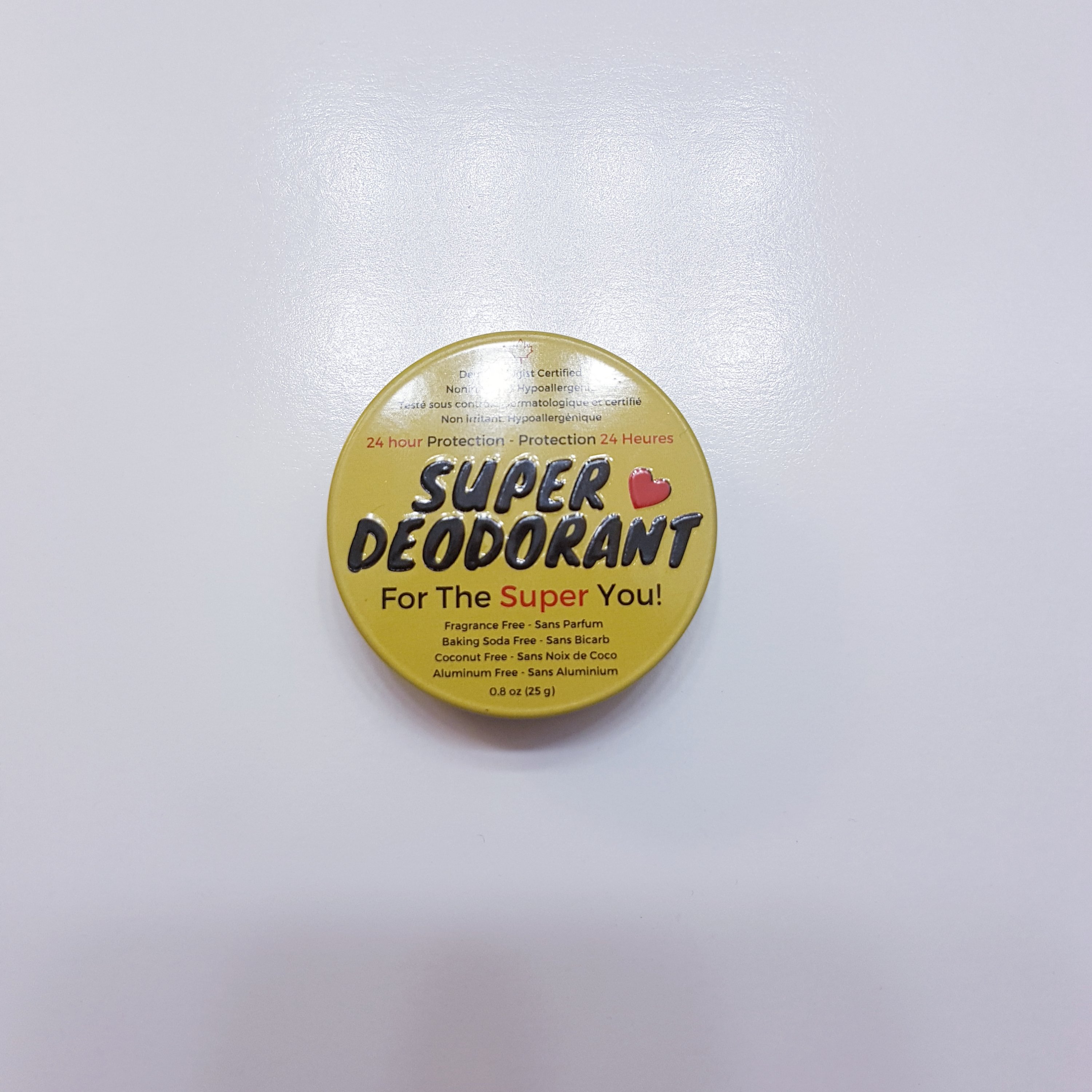 Super Deodorant is a natural deodorant that is free of fragrance, baking soda, coconut, AHAs, BHAs, essential oils and aluminum that provides 24-hour protection from body odor. This deodorant is safe for everyone. In addition to the underarms, it can be used on the feet, groin area and under/between the breasts.