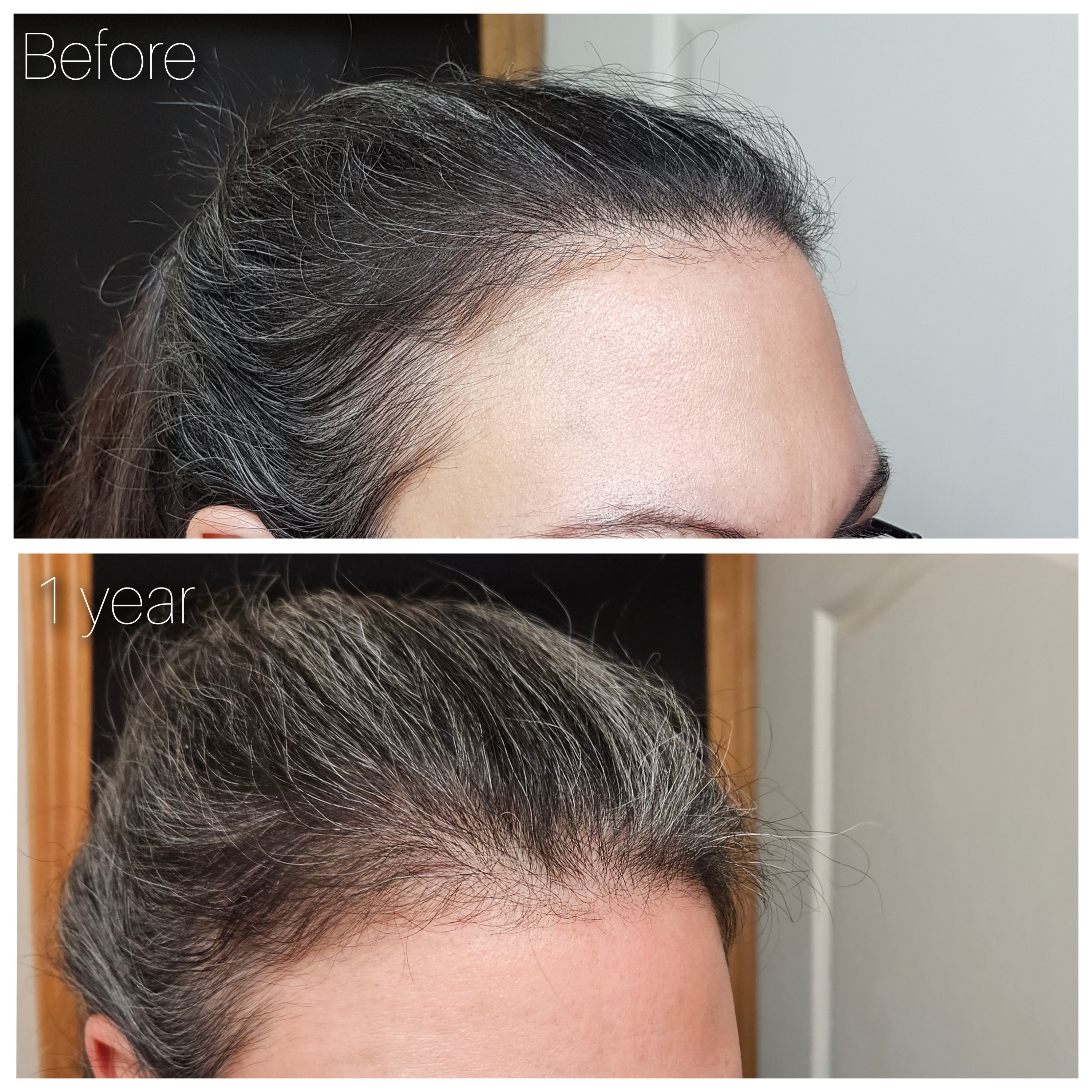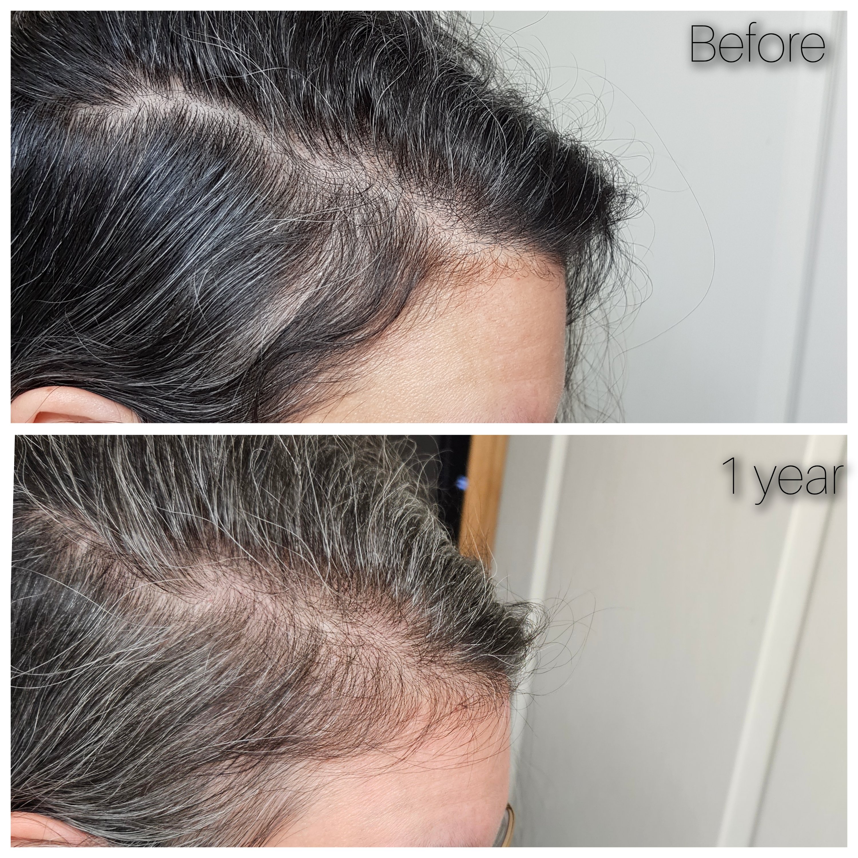 I first noticed thinning hair around age 35 I believe, around the front hairline and front and mids areas. I used The Ordinary’s multipeptide hair serum back in 2018 at age 37 for 6 months, where I did not really notice results. I also used the leave-in root treatment by Alterna Caviar in 2020, hoping for results. I am 42 now. Looking back at 2018, my thinning hair looks relatively the same to now, however, I have noticed, when getting a fringe again maybe about a year ago, the hair was significantly thinner around that area, and the fringe less full than it had been previously. I do not really have any scalp issues; dryness, dandruff, inflammation, etc., but my scalp is very often itchy. I have an oily scalp and dry hair.